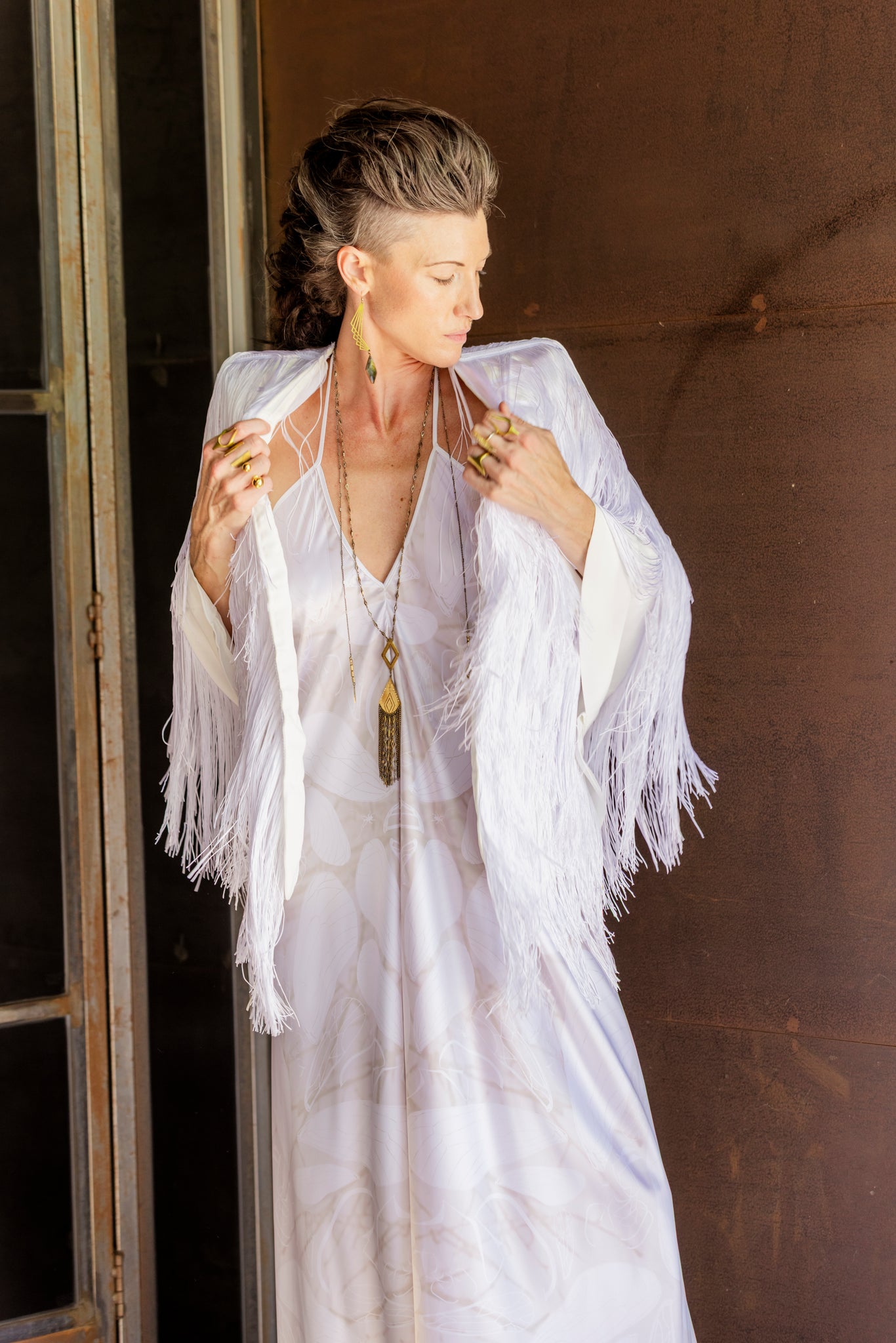 The Apex Fringe Cape is the perfect accent and designed to celebrate pure movement—every sway, turn, and breeze awakens its playful, cascading energy. Light yet intentional, it drapes with effortless architecture, merging old-world craftsmanship with a spirited sense of freedom. This is wearable art meant to spark delight, inviting you to step into your day with fluidity, curiosity, and a touch of theatrical charm.