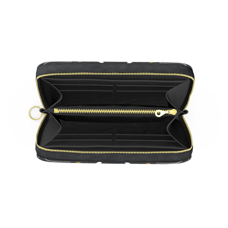 • Load image into Gallery viewer, Black wallet with gold zipper on a white background