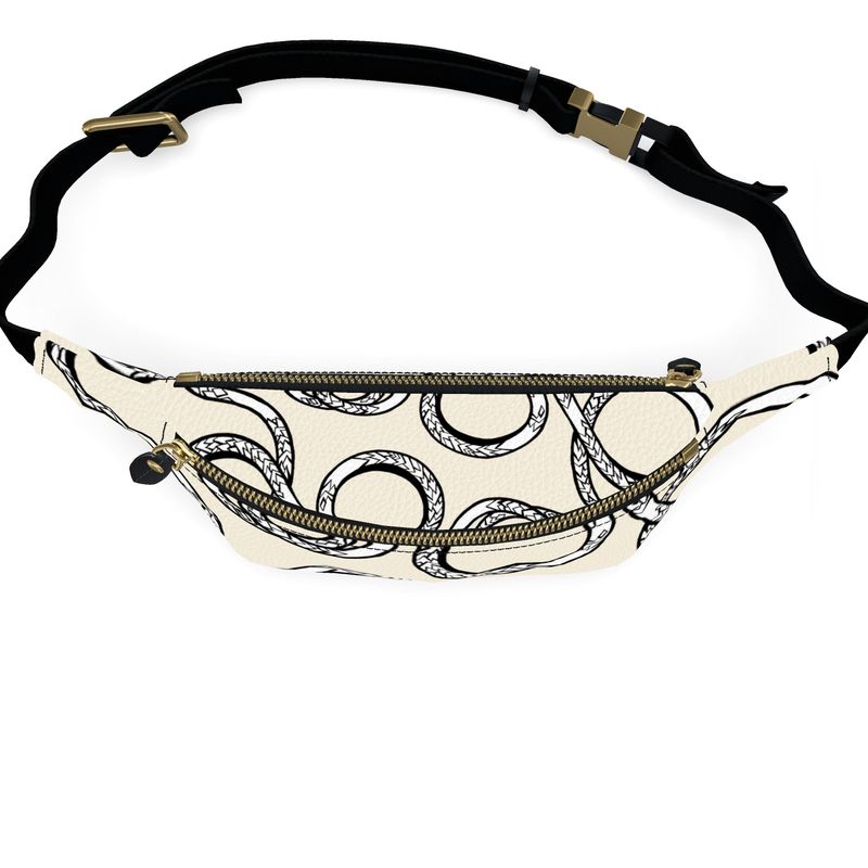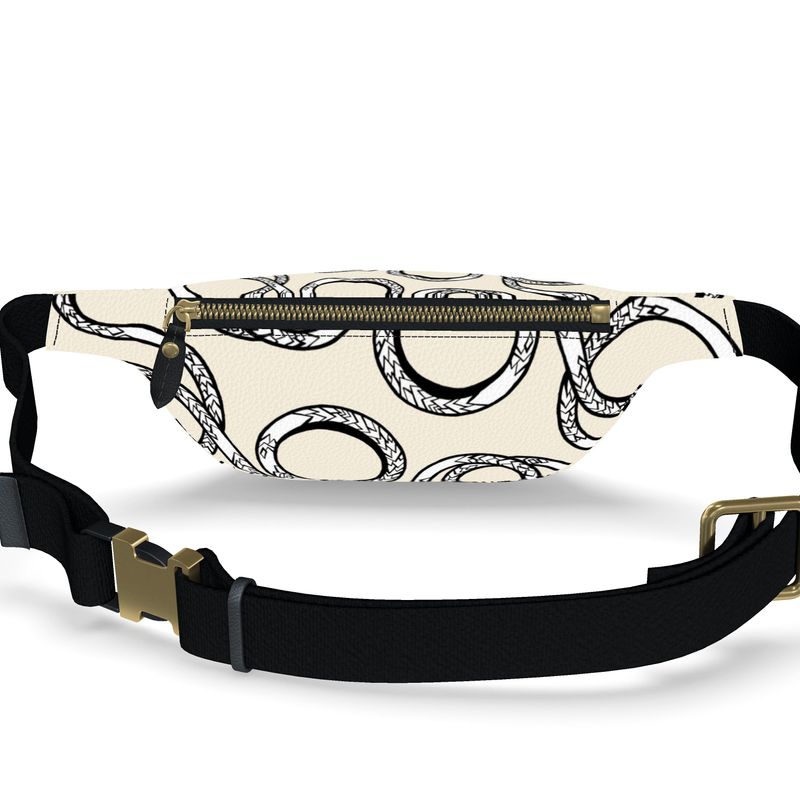 Fanny pack with black snake pattern on a white background