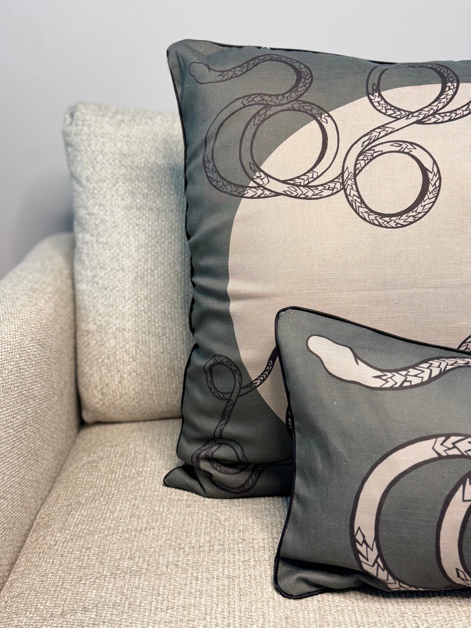 This is our natural custom made Cotton Linen fabric, made from a blend of Cotton and Linen natural plant fibers. This blend uses a plain weave construct with slub yarns in the weft to give a bit of personality and texture. Combined with stain piping and gold zipper enclosure.