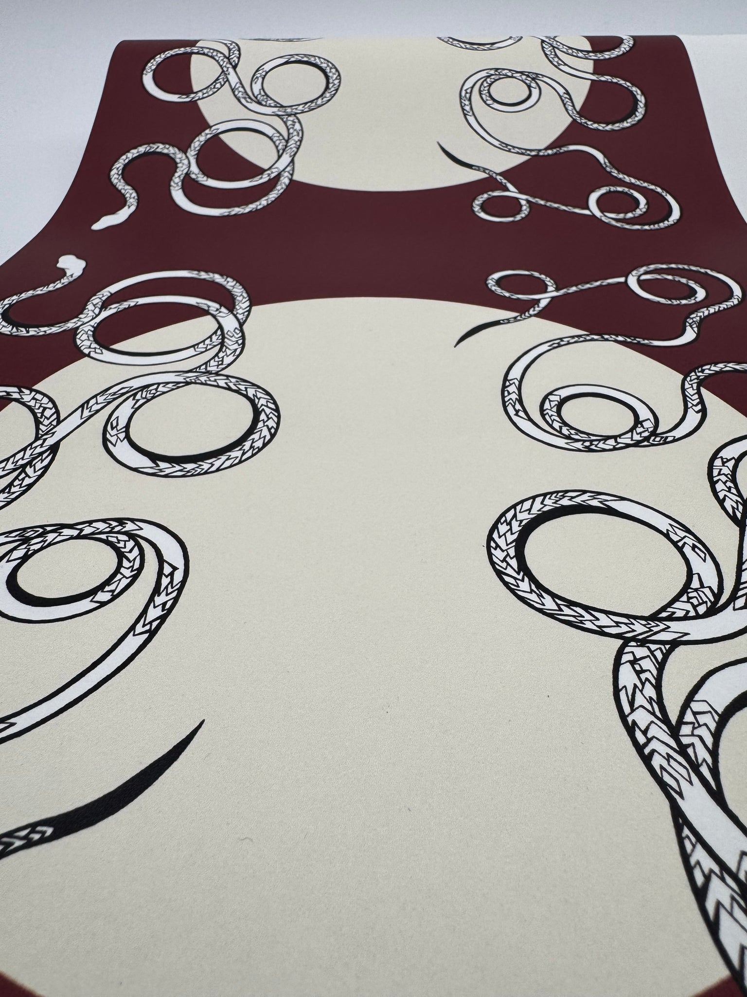 A bold sun shines luminous while the gentle weaving of the serpent welcome the disruption of the shadow side.