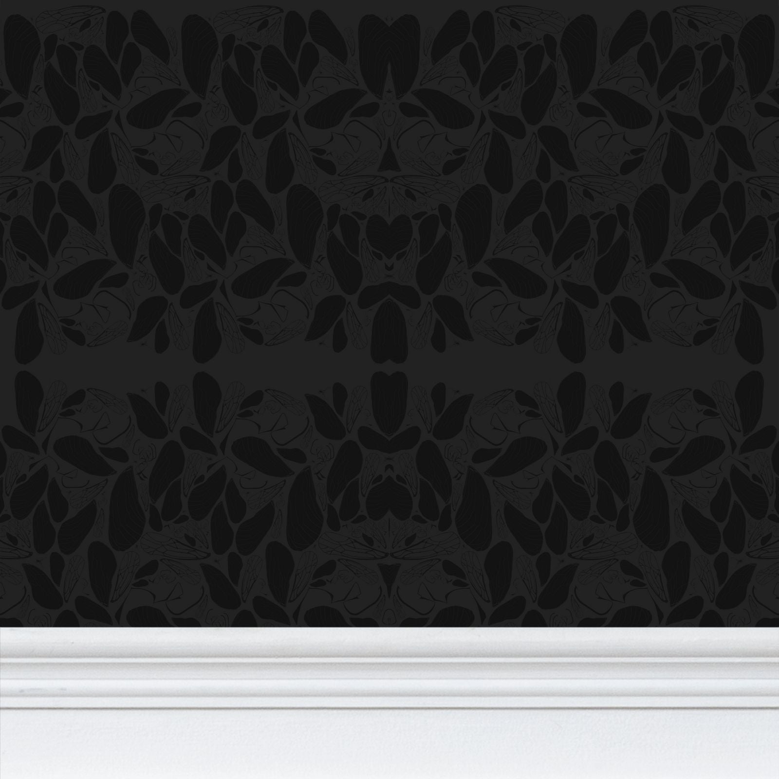 Delicate hand-drawn cicada wings flutter in asymmetrical murmurations and combine with Mother Nature’s chaotic geometry to create a stunning collection of patterns.