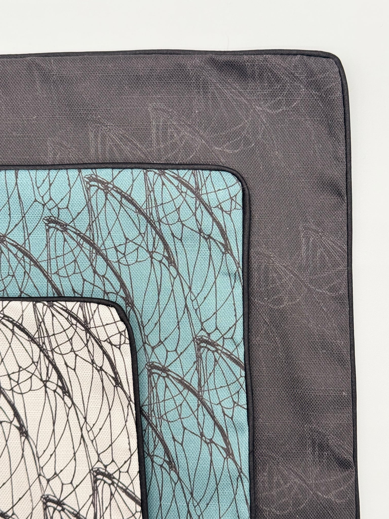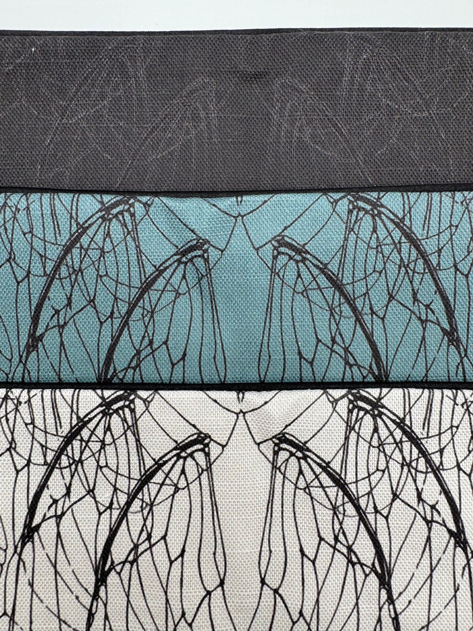 Delicate hand-drawn cicada wings flutter in asymmetrical murmurations and combine with Mother Nature’s chaotic geometry to create a stunning collection of patterns.